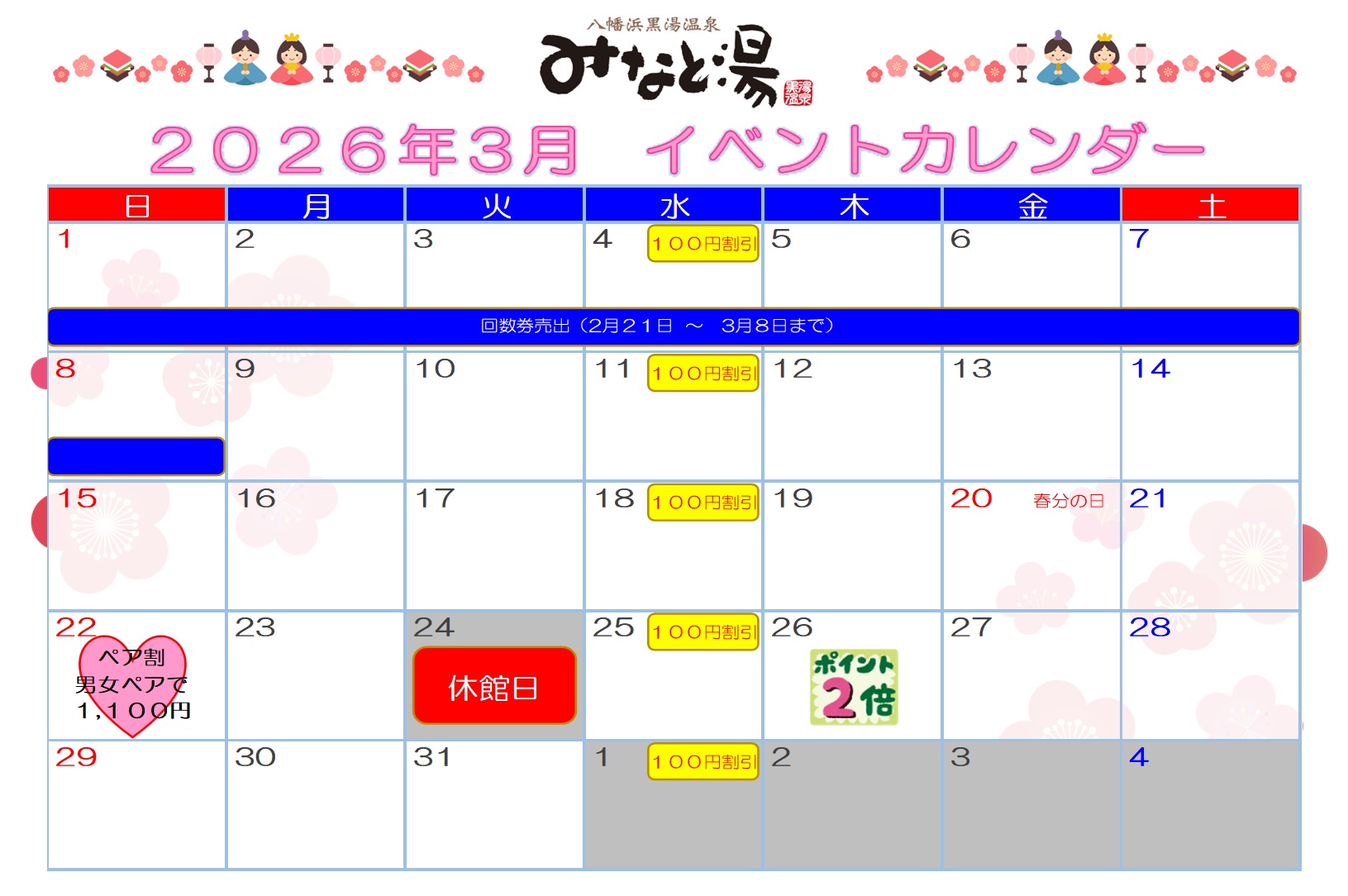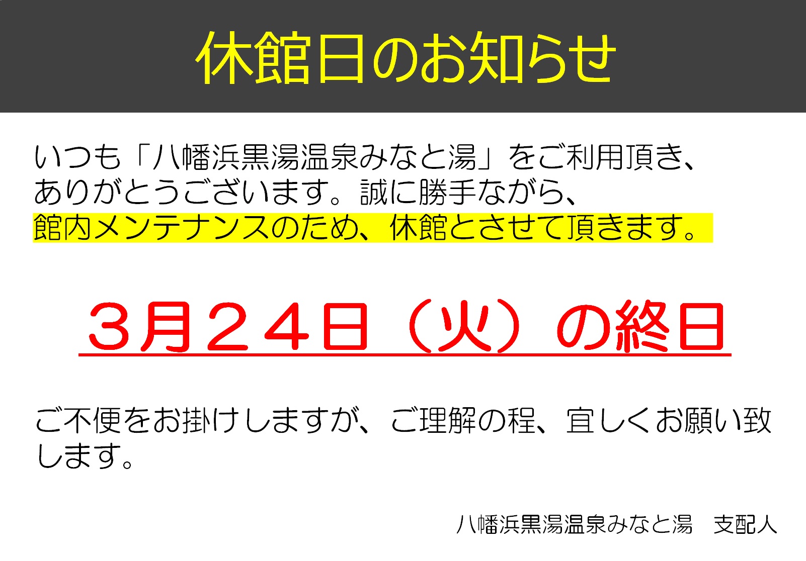 また、3月24日(火)は臨時休館となりますので、ご理解のほどよろしくお願いいたします。