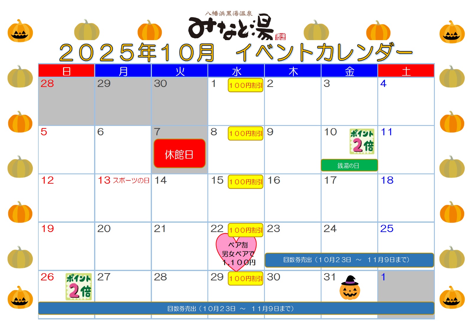 10月もイベントを用意しておりますので、是非みなと湯をご利用ください