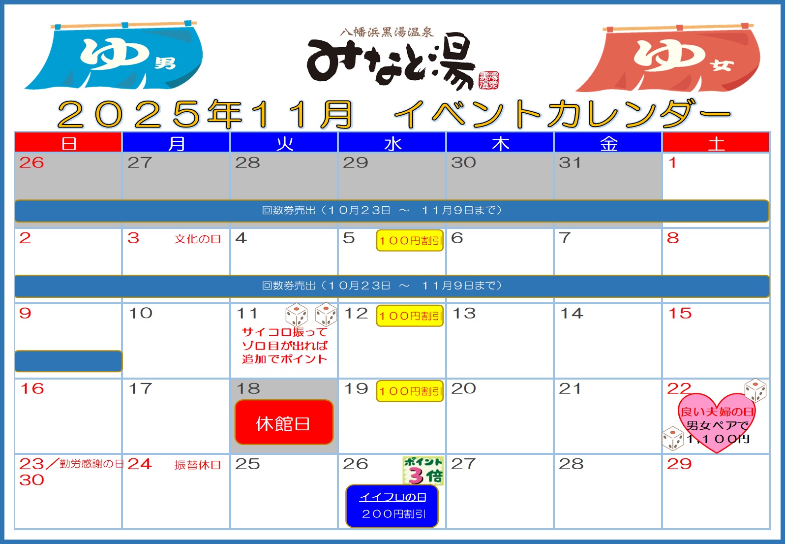 また、11月26日の「イイフロの日」は、ポイント3倍&入浴料金を200円引きでご入浴出来ます。