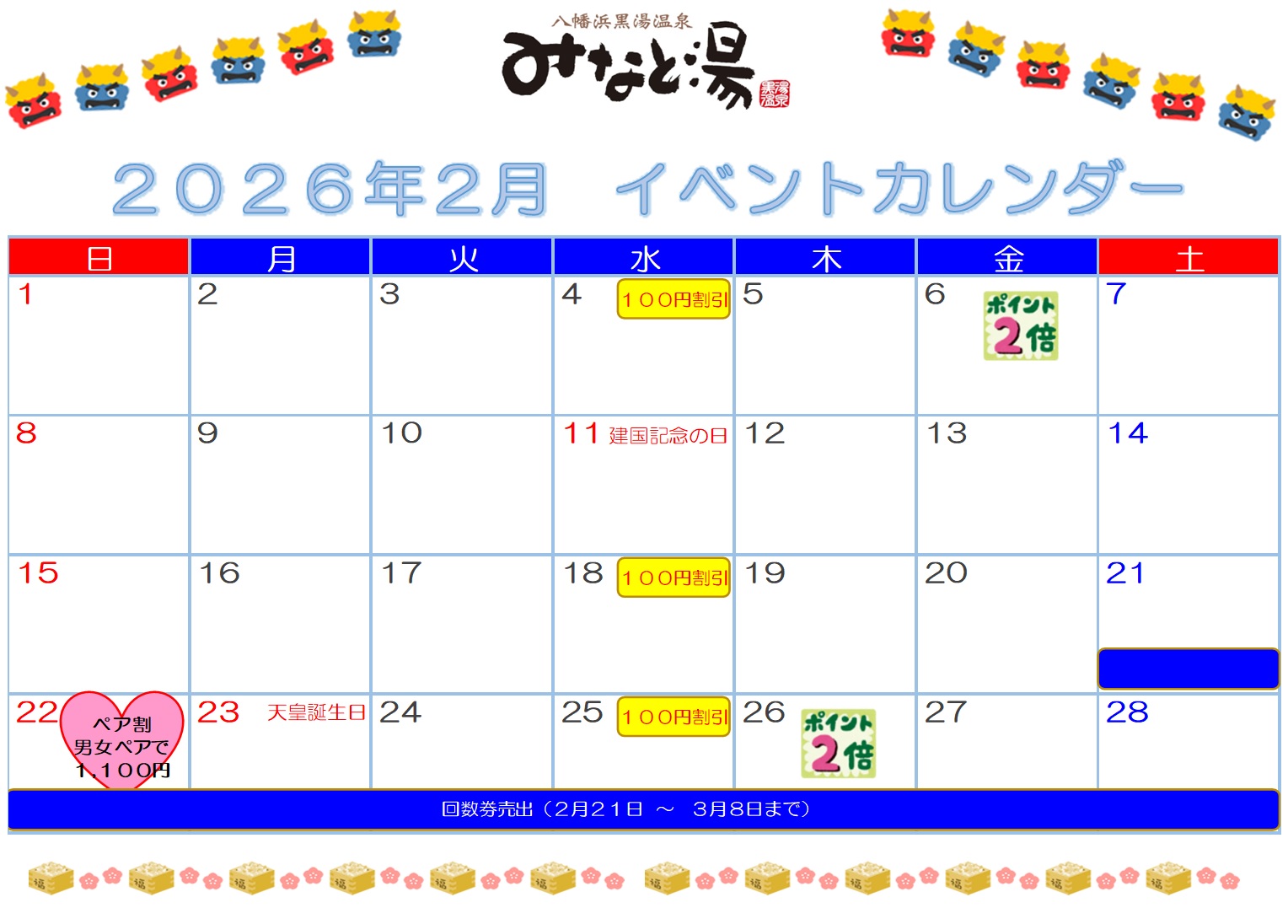 今月は、2月6日の「フロの日」もポイント2倍とさせていただきます。